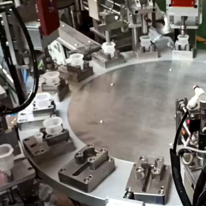 1. Esta máquina se aplica para el ensamblaje automático de productos de múltiples piezas, con requisitos de tecnología de ensamblaje múltiple, como mezcladores de medicamentos tapa para IV infusión bolsas, agujas dispensadoras.